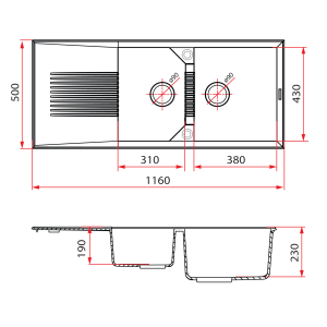 Rubine MEQ 860-86R PB | MEQ 860-86R TI Inset Granite Kitchen Sink