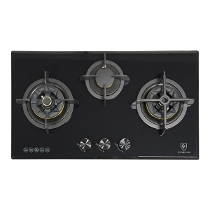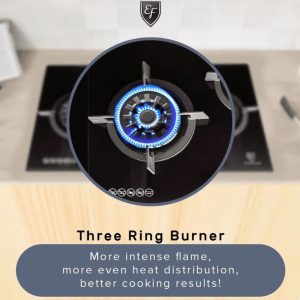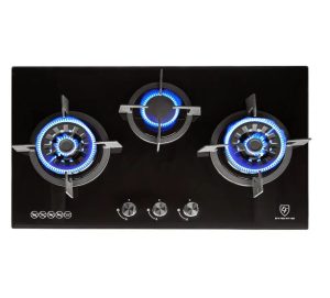 EF EFH 7636 WT VGB 3 BURNER BLACK TEMPERED GLASS GAS HOB