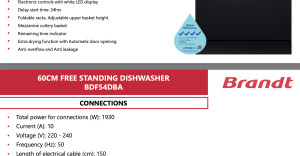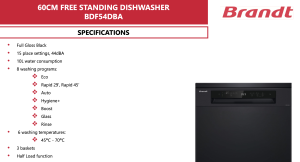 Brandt BDF54DBA Free Standing Dishwasher