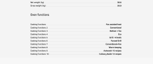 A selection of 15 dishes for automatic cooking: select the weight of the food, the oven programmes itself in terms of time, temperature and cooking function.