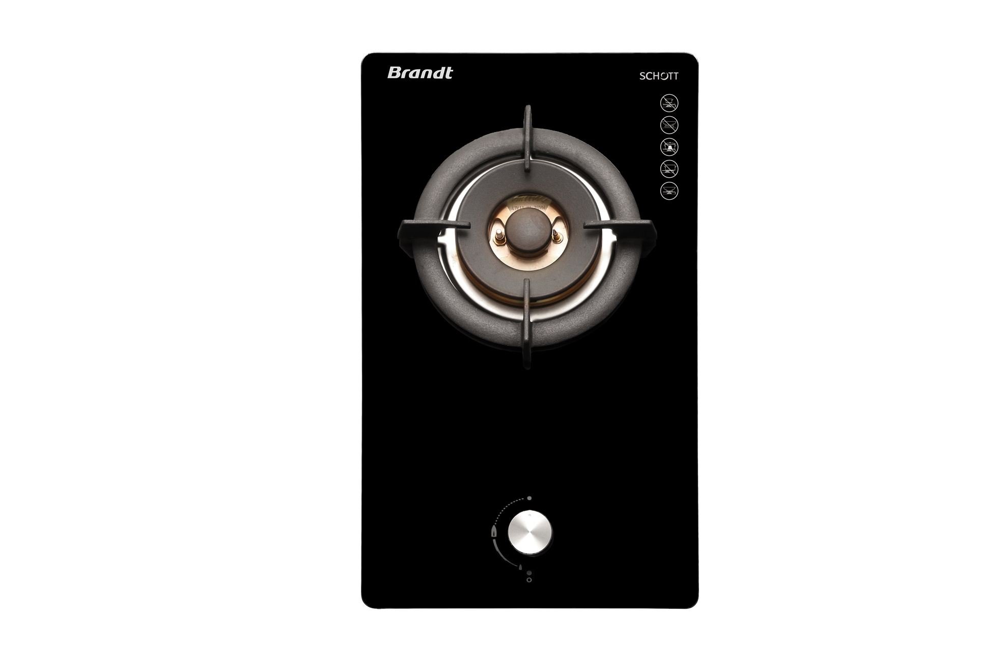 All Brandt gas hobs come with a thermocouple safety device that is activated whenever the gas hob is turned on. In case of accidental extinction of the flame, the gas supply is immediately switched off to prevent gas leakage.