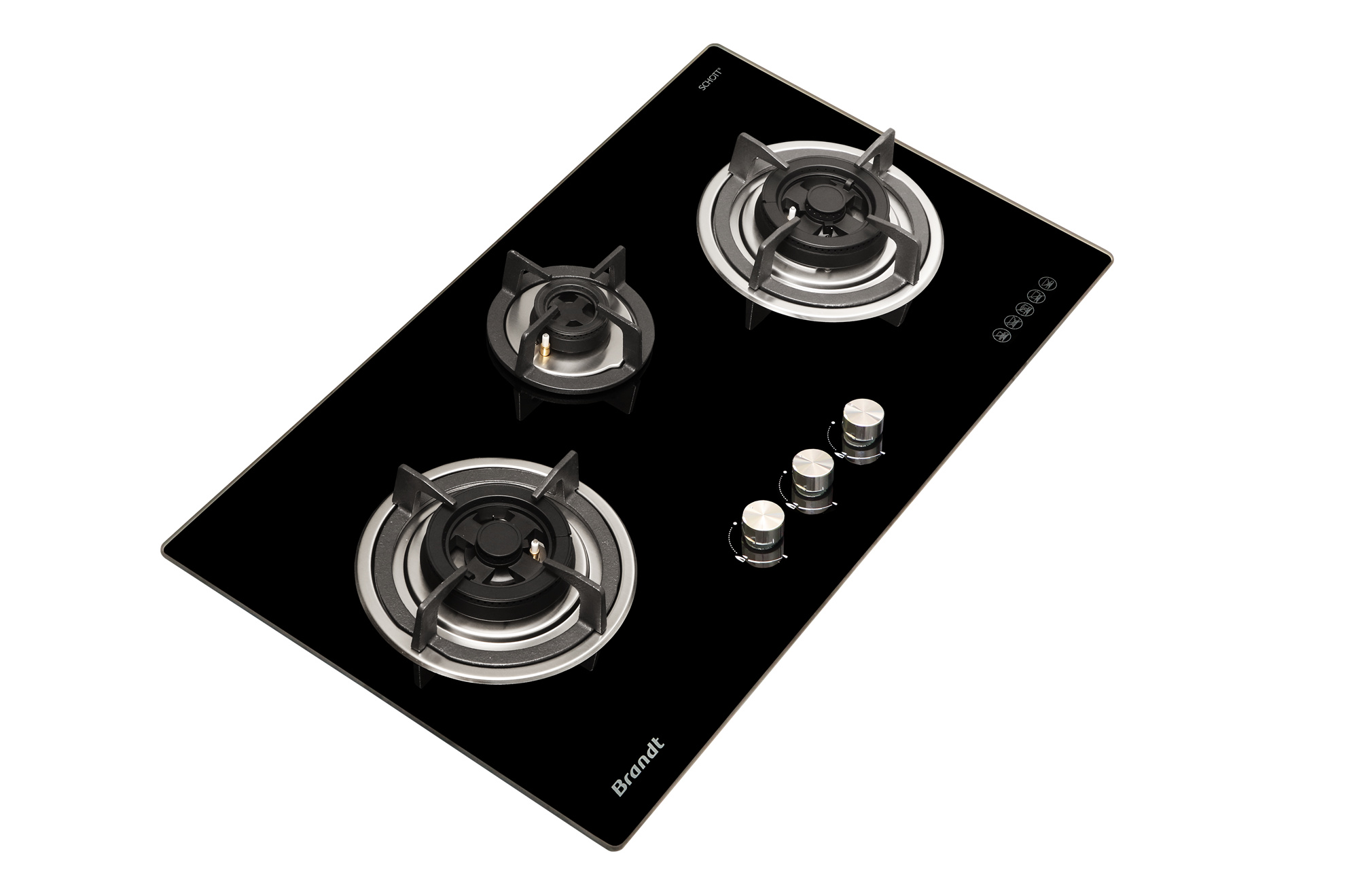All Brandt gas hobs come with a thermocouple safety device that is activated whenever the gas hob is turned on. In case of accidental extinction of the flame, the gas supply is immediately switched off to prevent gas leakage.
