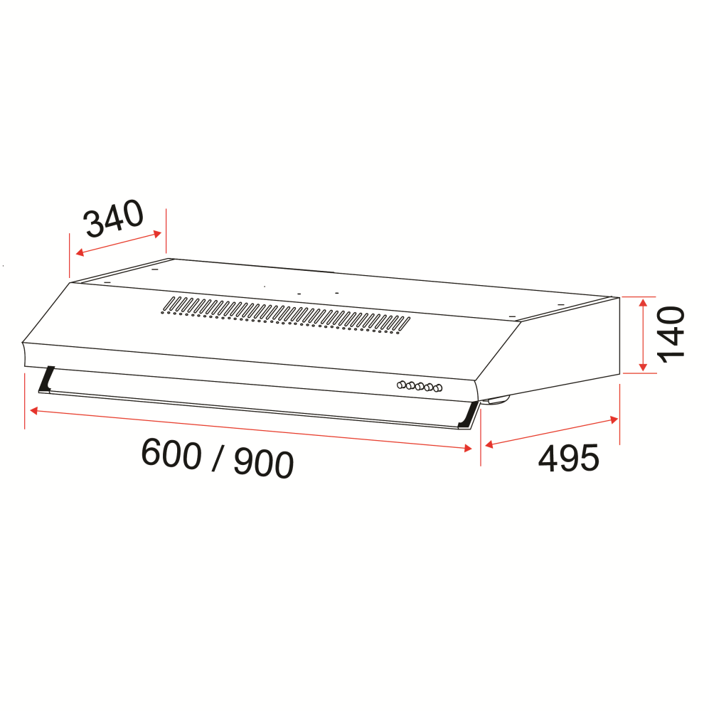 ➥ W900 × D495 × H140mm (EFCH 9101 HM SS)