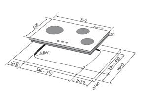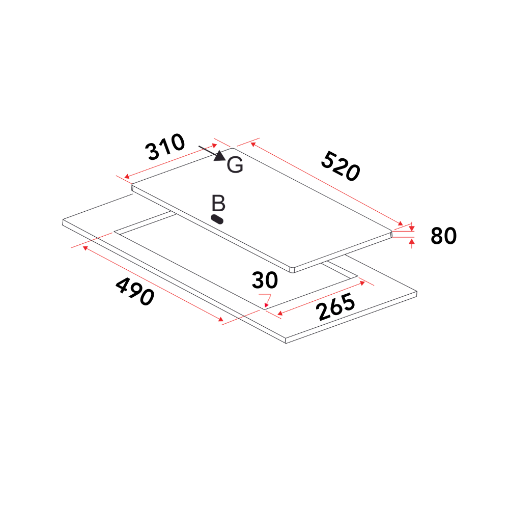 ➥ Cut-Out Size: W265 × D490mm, R30mm