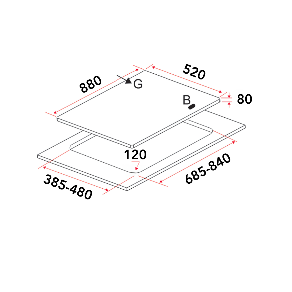 ➥ Cut-Out Size: W685~840 × D385~480, R120mm