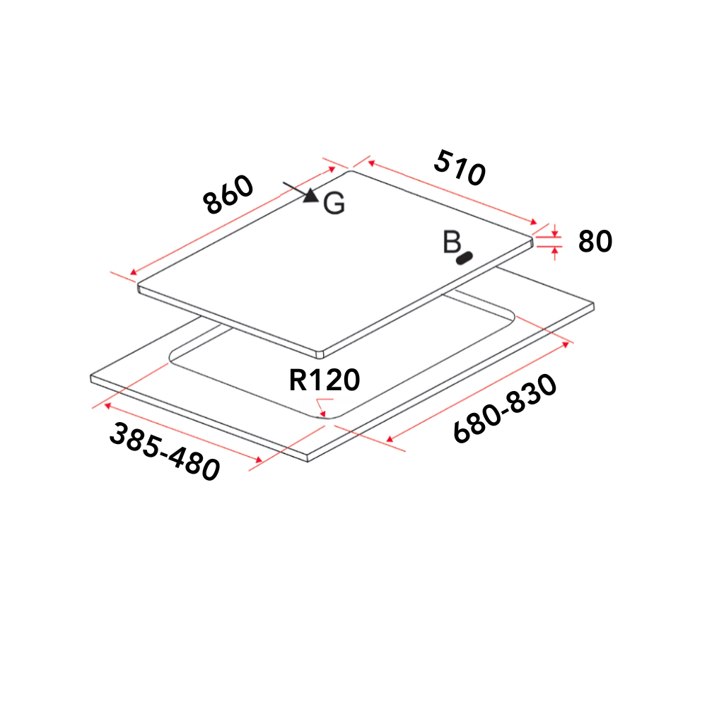 ➥ Cut-Out Size: W680~830 × D385~480, R120mm
