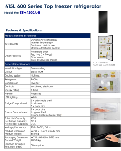 ELECTROLUX ETM4200 A-A/A-B 415L 600 SERIES INVERTER BLACK TOP FREEZER REFRIGERATOR