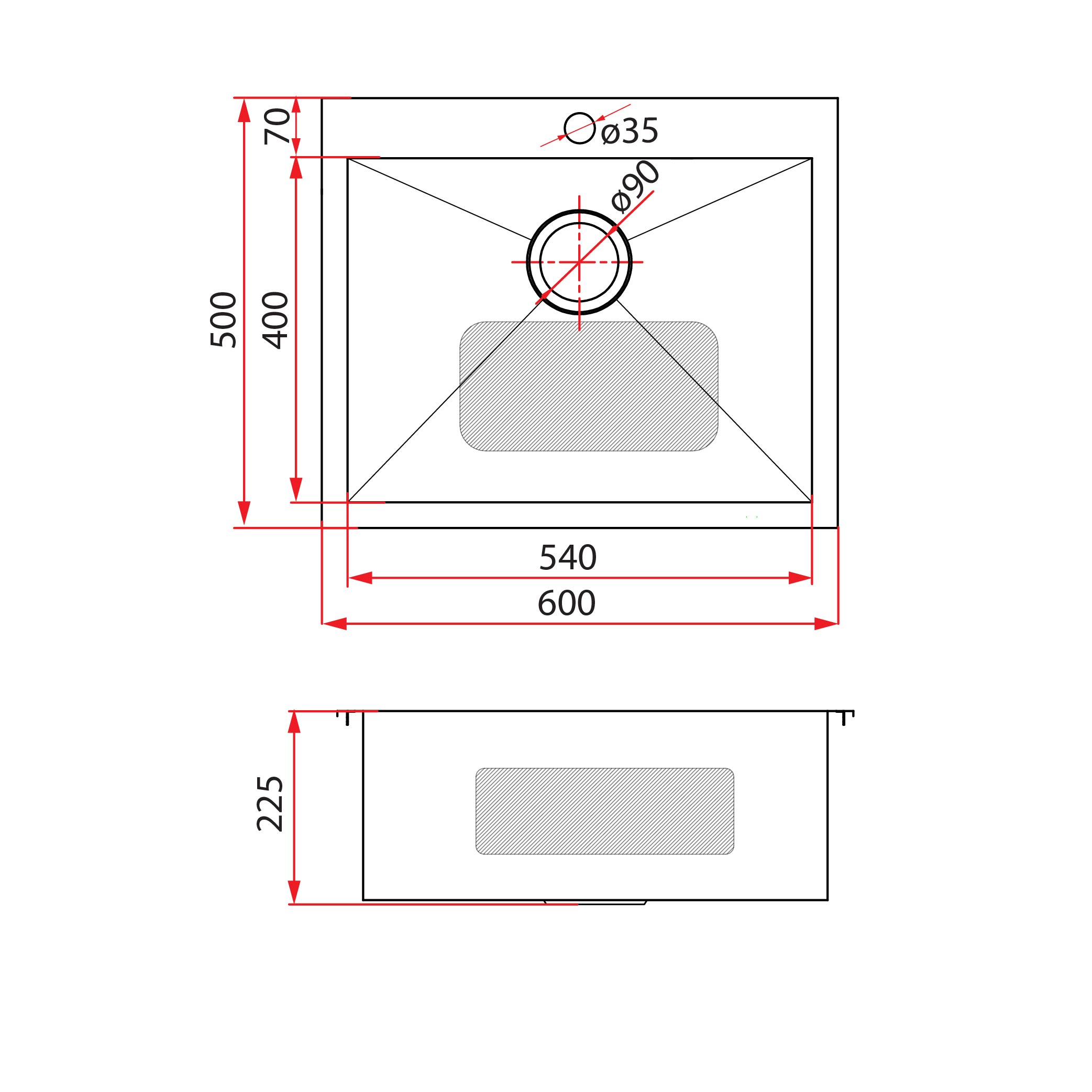 - Dimensions: 600 Ă— 500 Ă— 225 mm (length Ă— width Ă— depth)