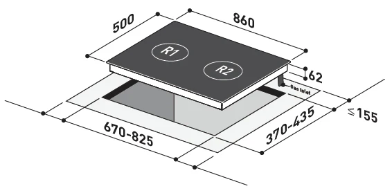 ▪ Cut‑Out Dimension: L670–825 × W370–435 mm