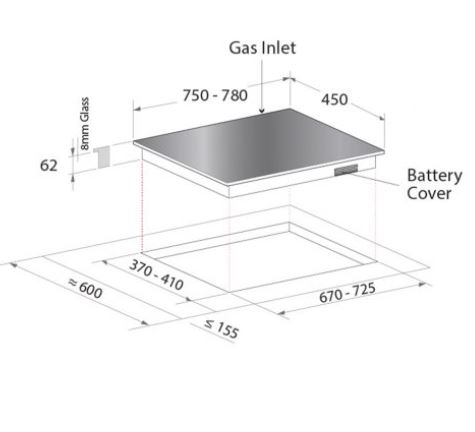 + Built-In Dimensions WxD (mm): 670-725 x 370-410