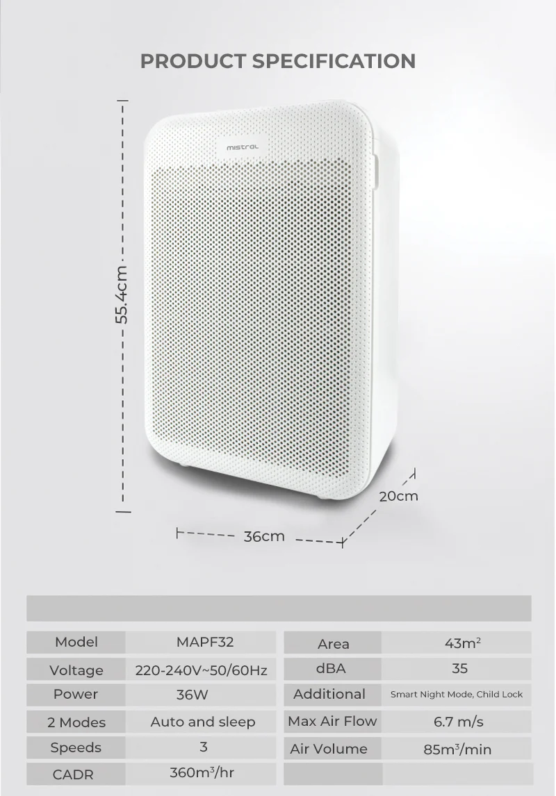 Mistral MAPF32 Smart Air Purifier with HEPA Filter