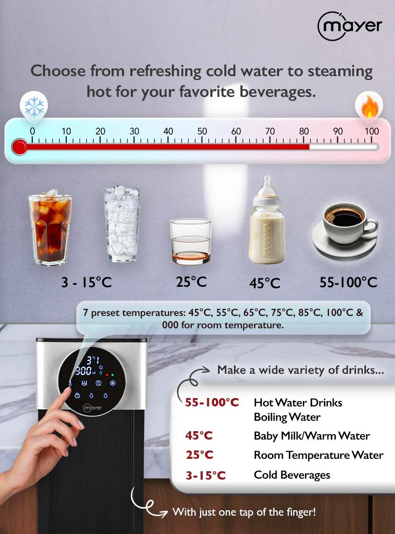 ▪︎ 8 preset water temperatures: Cold, Room Temperature, 45°C, 55°C, 65°C, 75°C, 85°C & 100°C