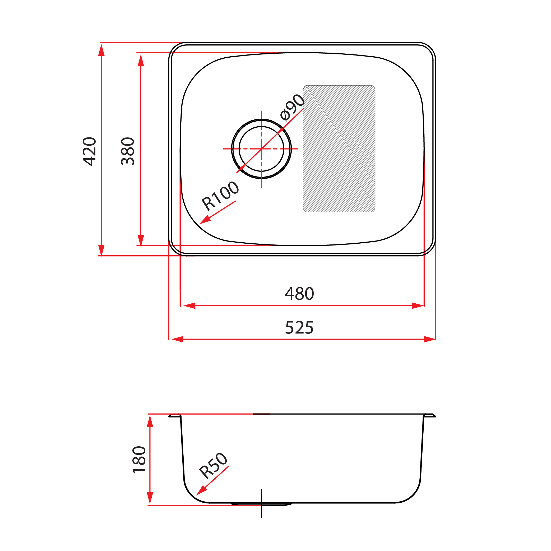 - Overall Dimension: 525 × 420 × 180 mm