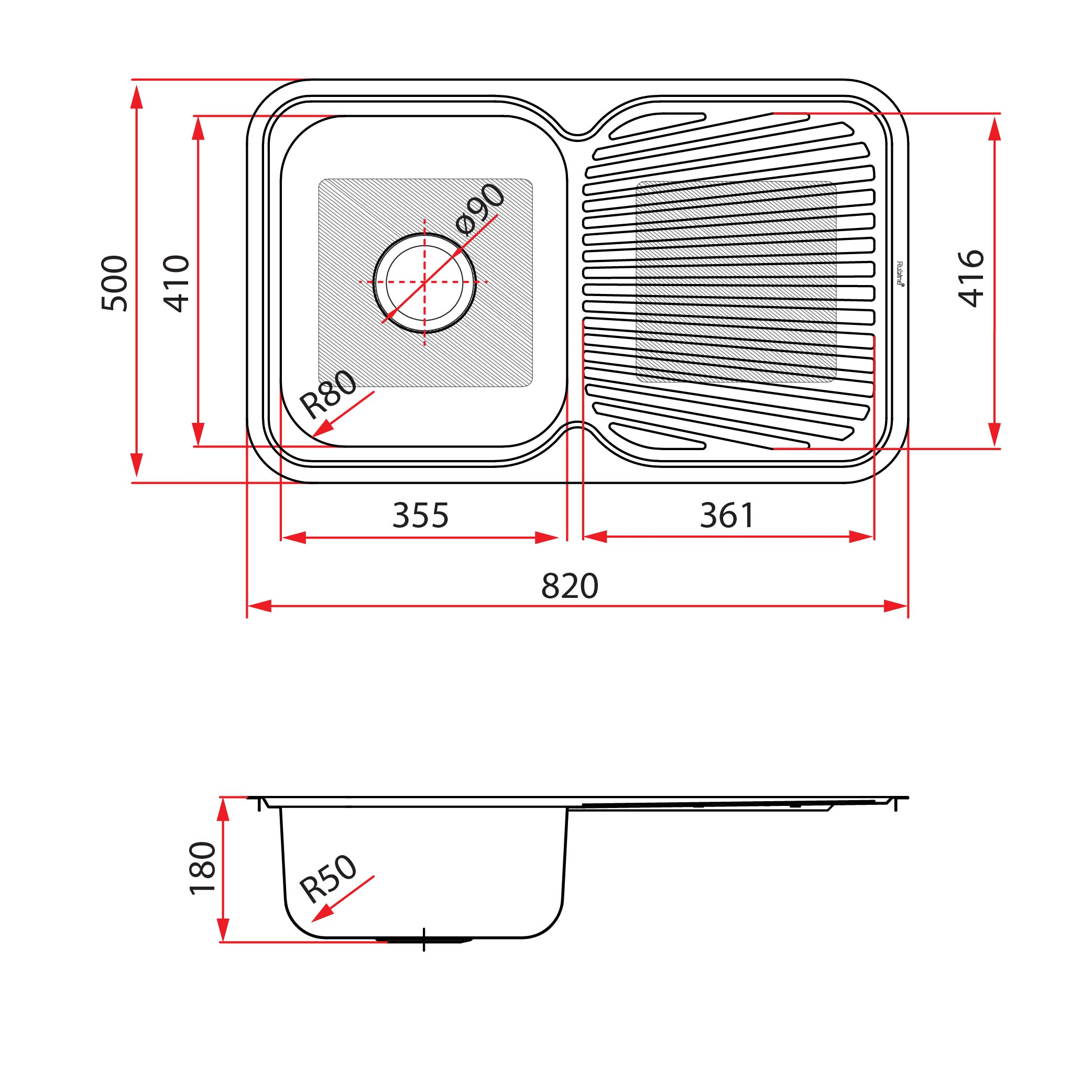 - Overall Dimension: 820 × 500 × 180 mm