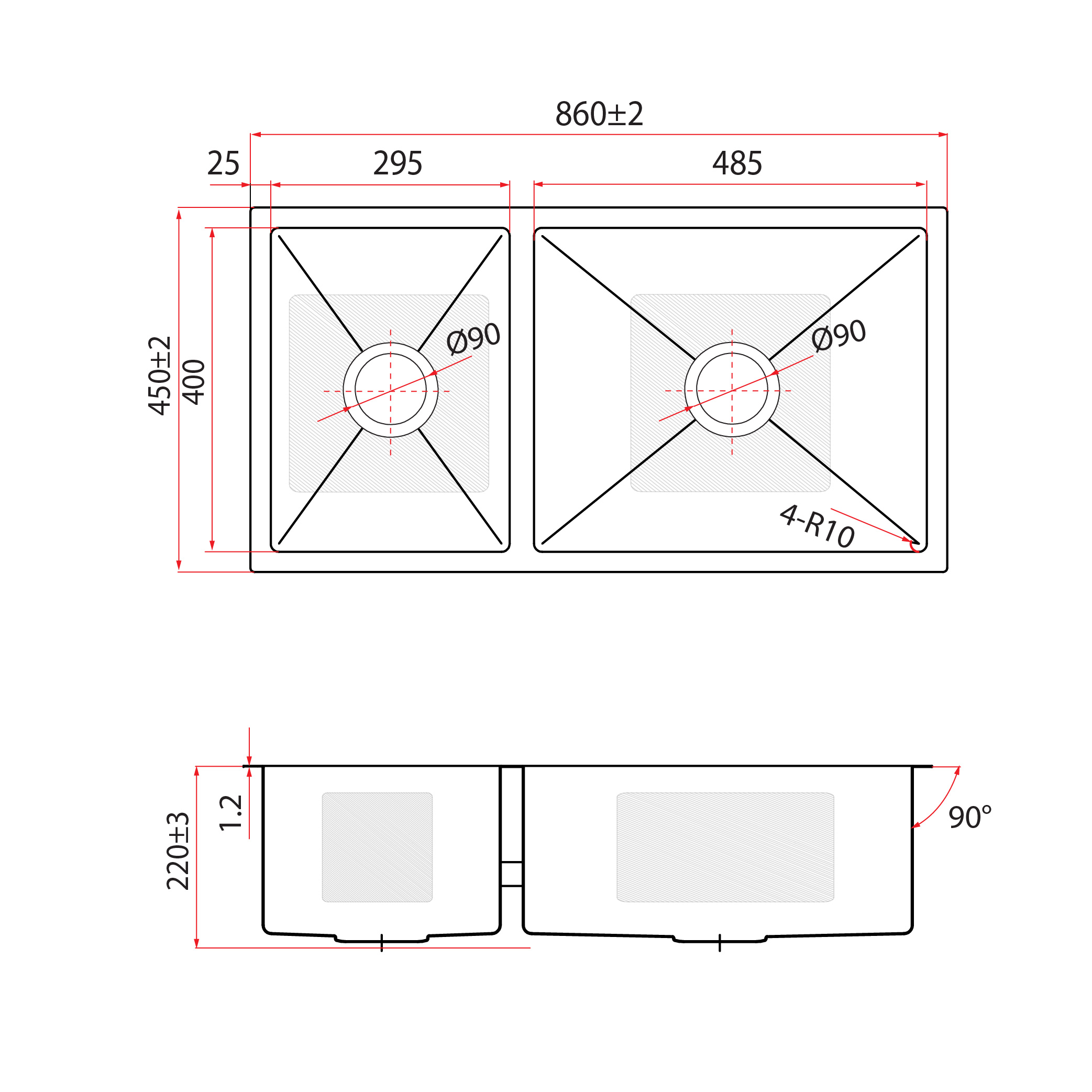 ▪ Bowl Dimension: 295 × 400 mm / 485 × 400 mm