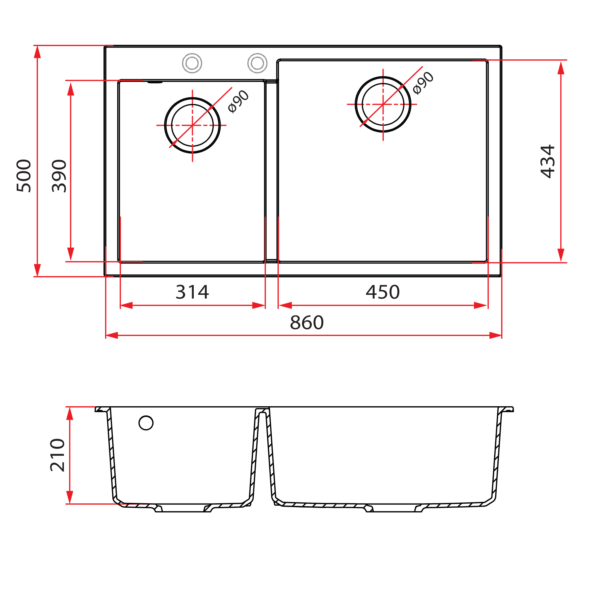 - Reversible: Yes (can be installed with the smaller bowl on either side, depending on kitchen layout)