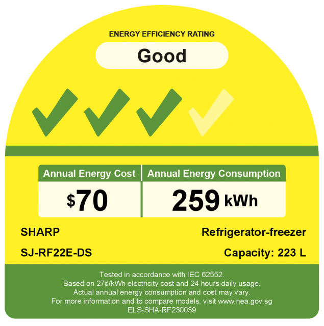 | Energy Saving Class (Singapore) | 3 Ticks |