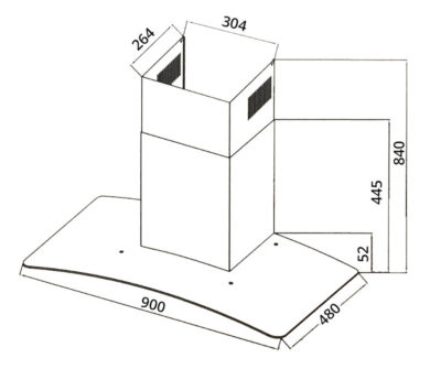 ‣ 90cm tempered glass chimney hood