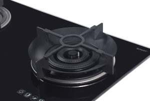 - Heavy-duty cast iron pan and wok supports with enamel coating