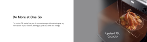 - Key benefit: jumbo 73L cavity allows more cooking at once without requiring extra kitchen space.
