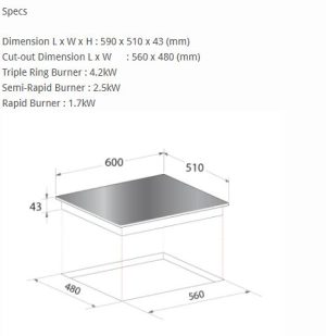MAYER MMSS633 60CM 3 BURNER STAINLESS STEEL GAS HOB